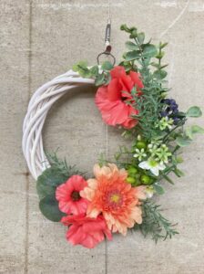 アーティシャルフラワー(造花)を使った『春の庭のリース』のワークショップを5/9(木)の9:30~11:30 に開催します。 オレンジのラナンキュラスやガーベラをメインに庭に咲いていた草花をそのまま使ったようなリースです […]