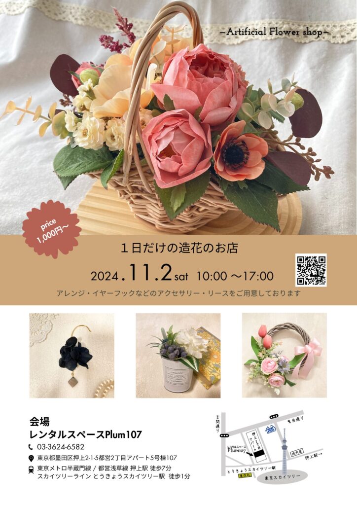 11/2(土) 10:00~17:00 『1日だけの造花のお店』をオープンします。